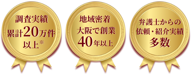 私たちは地元大阪で40年以上にわたり、弁護士が安心して法廷に提出できる調査報告書を提供してきました。